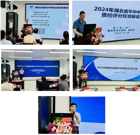 彭小祥分享了“湖北省脑卒中防治中心2024工作思考”;黄石市脑卒中防治中心主任匡良洪对2024年湖北省卒中中心质控评分标准进行解读;荆州市脑卒中防治中心主任龚道恺作“2024二级医院卒中中心现场指导培训”主题汇报;荆州市脑卒中防治中心办公室主任苏峻峰作“2024年荆州市脑卒中质控工作汇报”;天门市脑卒中防治中心主任杨小华分享了了“科普宣教赋能卒中中心建设”。