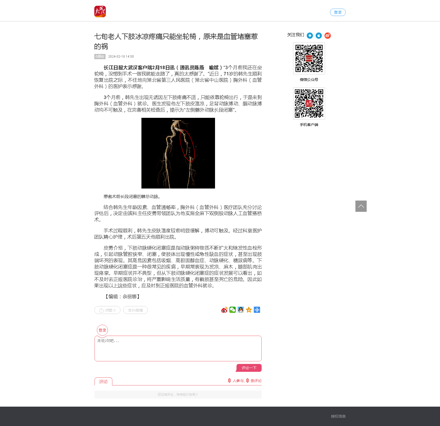 七旬老人下肢冰凉疼痛只能坐轮椅,原来是血管堵塞惹的祸