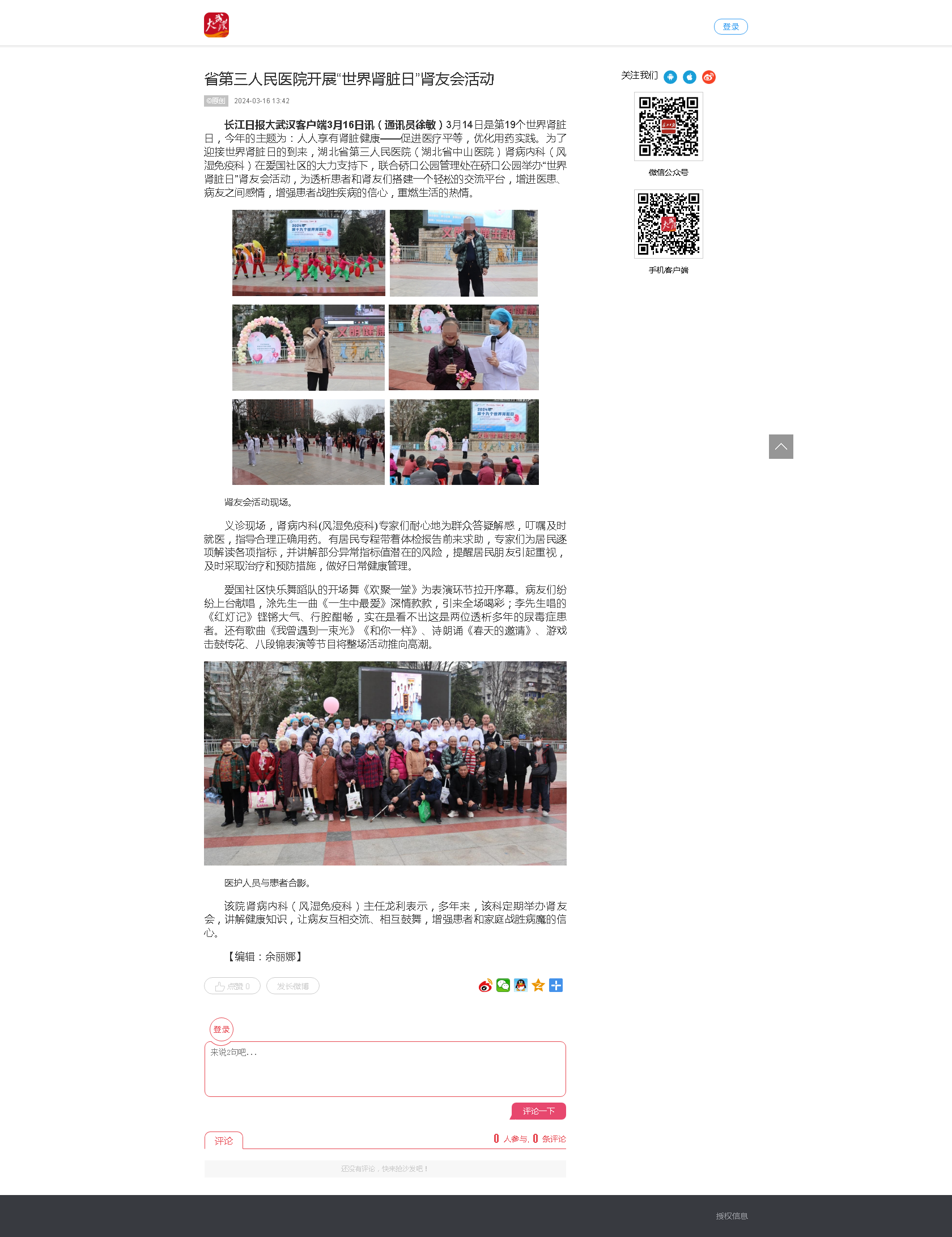 省第三人民医院开展“世界肾脏日”肾友会活动 发布时间:2024-07-12 来源:长江日报 上一篇:热心护士多问一句话,挽救脑出血患者生命 下一篇:纸笺传心意,真情暖人心 ——患儿家长发长文感谢省三医儿科医护