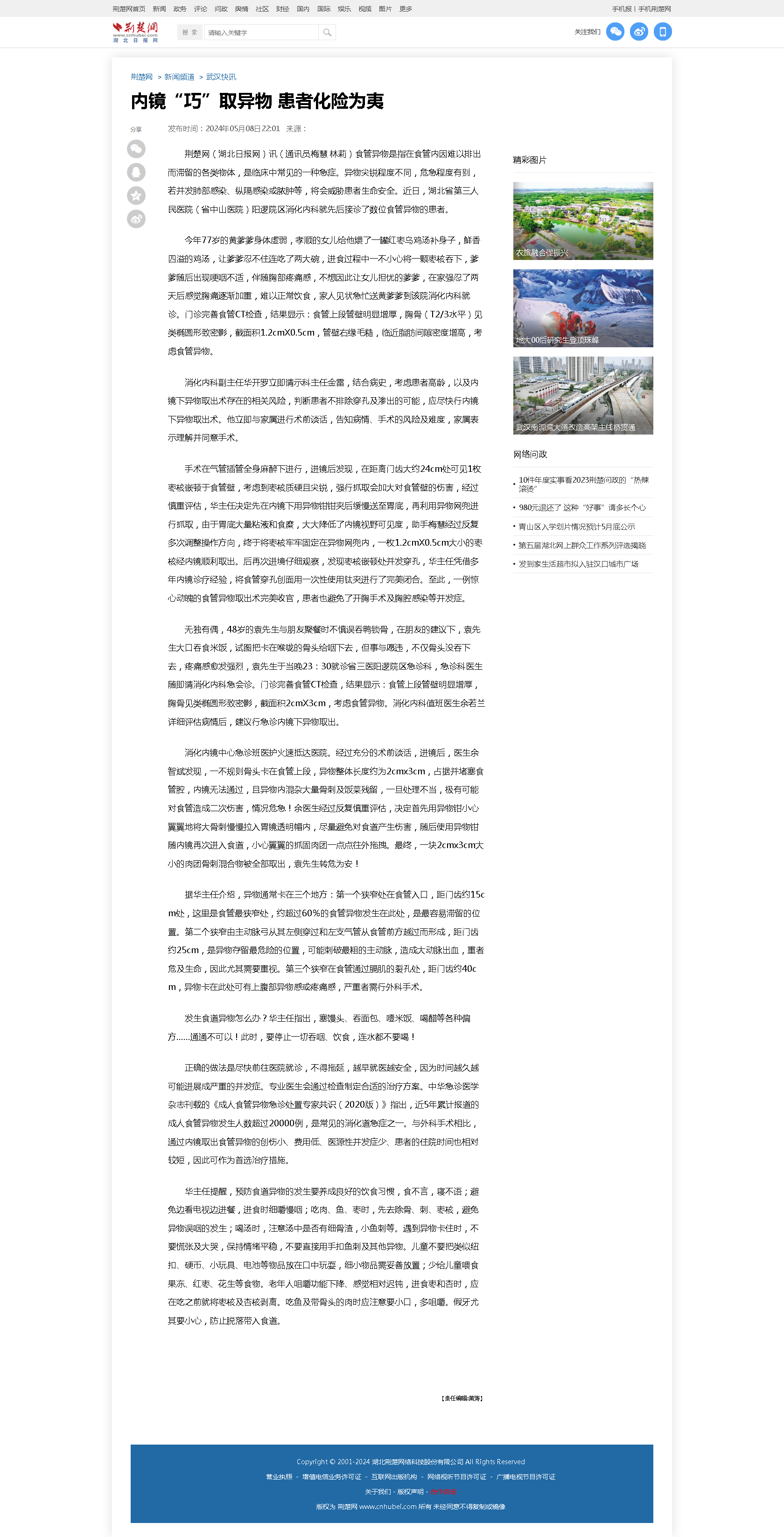 内镜“巧”取异物 患者化险为夷-荆楚网 发布时间:2024-07-12 来源:荆楚网 上一篇:冷热之间 一根针消灭肺结节 下一篇:【基层组织风采10】充分发挥医疗特长 做好群众“红色”服务——湖北省第三人民医院红十字会工作纪实