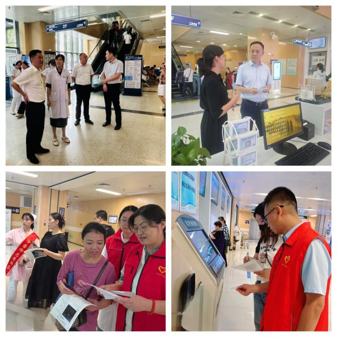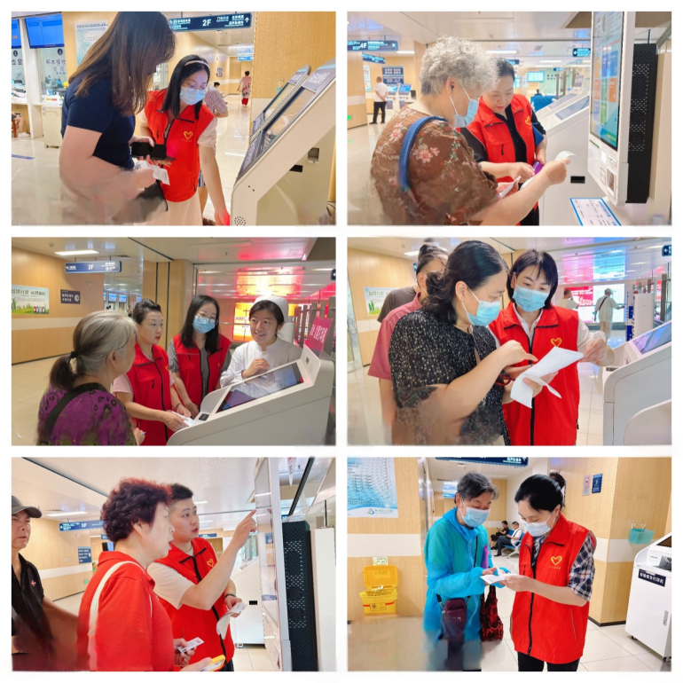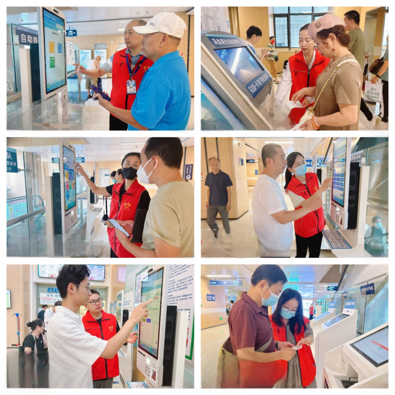 本次活动由院领导带队,行政职能部门全员行动,临床医技科室积极参与。借助医院微信小程序上线使用、微信公众号功能全面升级、门诊线上移动医保支付功能开通的契机,职工以患者身份体验看病就医流程,以志愿者身份引导患者看病就医。“自助机上如何挂号”“手机端如何进行医保缴费”“微信小程序上如何看检查检验结果”......门诊大厅、各楼层自助服务区处,志愿者们耐心的回答患者咨询,主动指引患者到各诊区就诊,指导患者使用自助机及医院微信公众号,有效分流窗口等待的患者,减少排队等候时间,使患者就诊更流畅。