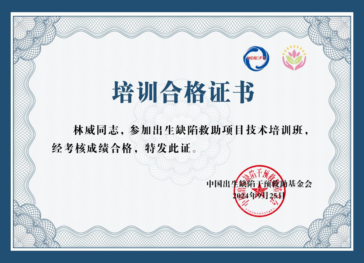 近日,由国家卫生健康委妇幼司举办的出生缺陷干预救助项目技术培训班在河北省石家庄市顺利召开。我院儿童康复科医生林威参与培训并顺利通过考核。