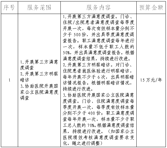 根据我院满意度调查工作开展需求,拟立项招标“湖北省第三人民医院第三方满意度调查服务项目”,现将相关要求公布如下,欢迎有意向、符合条件的企业积极报名。