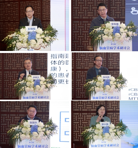 来自全国各地的专家学者们带来了一场学术盛宴。中国科技大学附属第一医院王锦权教授分享了《卒中-心脏综合征》,就心功能衰竭对卒中预后的影响作用进行了分析,同时给出了相应治疗策略,特别提出脑-肠的肠道微生物群及代谢产物可能成为防治卒中-心脏综合征的新方法。武汉大学中南医院章军建教授讲解了《卒中后抑郁障碍》,就卒中后抑郁发生的机制、临床特征、诊断标准、治疗预后等内内容结合最新的研究进展进行了阐述,并给出了将卒中后抑郁与血管性痴呆的进行关联研究的建议。广东省中医院郭建文教授带来了《糖尿病心脑血管共病的中西医结合研究》,就糖尿病心脑血管共病的病因及发病机制进行了讲述,同时提出了中西医结合研究思路,并就相关疾病采用三横三纵及病症关联的思路进行研究的设计方案进行了展示。武汉大学人民医院张兆辉教授讲解了《脑血管再通后无复流现象》,并针对脑血管再通后的无复流现象的可能机制、影像学及生物标志物评估、防治措施进行深入讲解。武汉市第一医院陈国华教授分享了《脑小血管病与认知障碍》,就脑小血管病的发病机制、评估、预防措施、与认知障碍的关系进行了阐述,特别是在抗血小板聚集、降压等方面给出新的治疗建议。湖北省第三人民医院邓小容教授讲解了《血管源性头晕的诊疗策略》,并针对血管性源眩晕的临床困境进行了深入讲解,特别针对急性前庭综合征、急性前庭综合征、后循环卒中相关的综合征、迷路卒中等内容进行详细阐述。