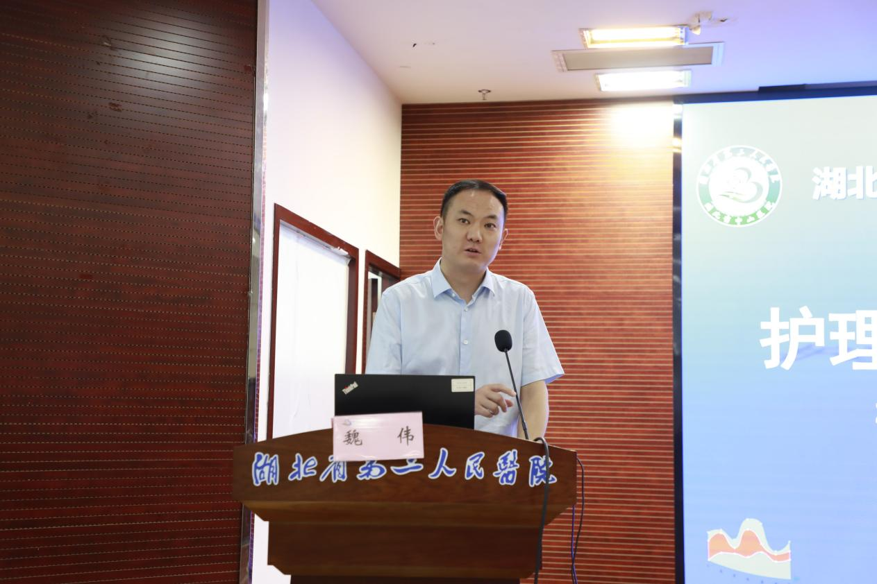 湖北省第三人民医院院长魏伟为比赛致辞。他表示,习近平总书记曾说,“核心技术要掌握在自己的手中”。全国各行各业积极响应党中央号召,掀起了“创新浪潮”,尤其自2019年启动三级公立医院绩效考核以来,科技转化已成为医疗机构必须要努力的方向。他指出,去年,医院与湖北省创新转化医学研究院共同搭建了科技创新转化平台,打破了基础研究到临床应用“最后一公里”的壁垒,提供了将护理专利创新转化为产品的渠道,将更好的推动护理高质量发展。最后,他预祝选手能取得好成绩,能有一批好作品走向生产线,同时激发医院创新活力,带动院内各条战线职工积极参与医疗创新转化工作。