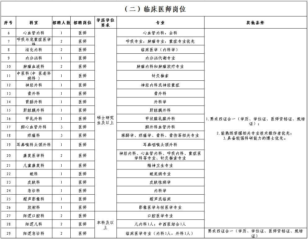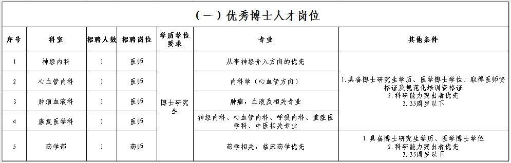 根据医院建设规模和业务发展需要,为加快医院学科建设,培养一支高素质专业团队,现面向全国招贤纳才,公开招聘各专业人才,诚邀各专业贤能之士加入我院,施展才干、成就梦想,携手开创医院高质量发展的美好未来。