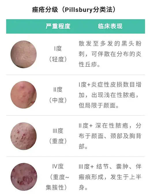 对于中重度痤疮,往往还需要口服药物治疗,比如异维A酸,可以抑制皮脂腺分泌、改善毛囊角化、抗炎和预防瘢痕形成;抗生素类药物,用于杀灭痤疮丙酸杆菌、减轻炎症;激素调节类药物,有助于调节内分泌平衡;另外,中医药辨证施治也是不错的选择。