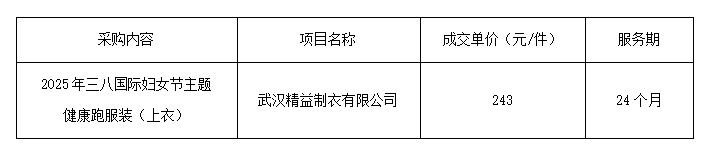 2025年三八国际妇女节主题健康跑服装采购项目成交公告