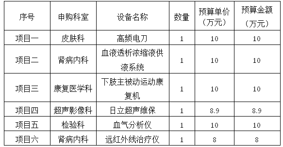 根据我院医疗设备采购、维保需求,拟采购以下医疗设备及维保项目,现将相关要求公布如下,欢迎有意向、符合条件的生产企业及供货商积极报名。