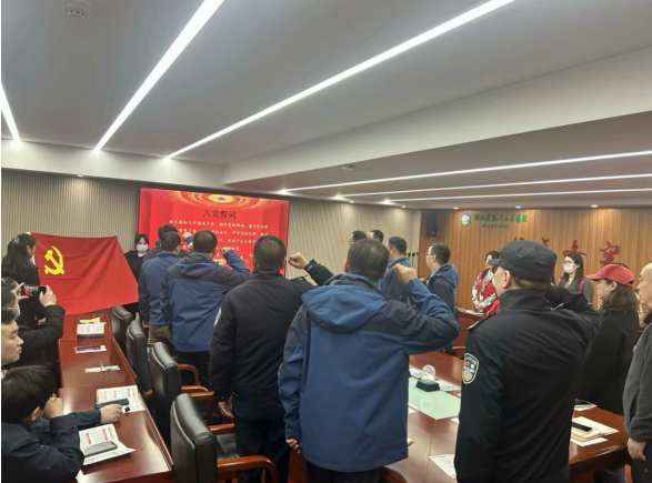 参加此次活动的全体党员同志面向党旗,重温入党誓言。