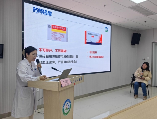 高血压是脑卒中的主要危险因素之一,但用药不当可能引发严重后果。活动中,药学部张新华、杨萍、方莎莎三位老师通过情景剧的形式,介绍了高血压用药的常见误区,提醒大家规律服药,平稳降压。