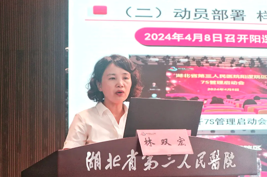 护理部主任林双宏作阳逻院区7S管理阶段总结工作报告。报告回顾了7S管理工作从项目启动到最后一批验收的历程,生动展示了各科室的蜕变与成果。成绩的取得离不开各位领导和同仁的辛勤付出。