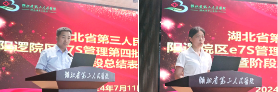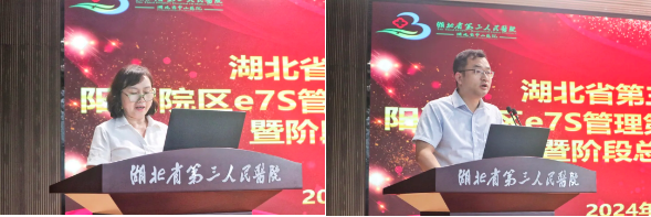 阳逻院区财务专员邓丽琼、医疗部(医教)负责人胡光煦作为推广科室代表分享了科室7S管理打造过程中的心得体会。