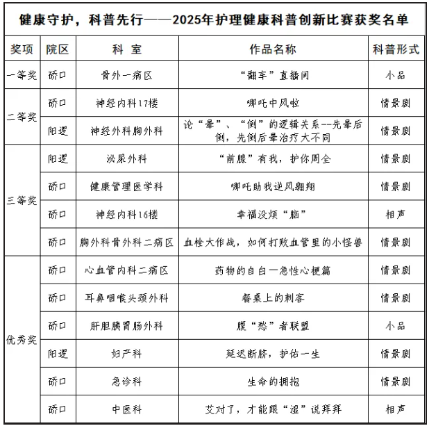 健康守护,科普先行——湖北省第三人民医院成功举办2025年护理健康科普创新比赛