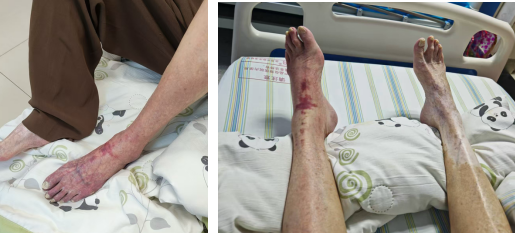 术后,徐奶奶左下肢循环立即得到显著改善,皮肤大面积的紫红色消退,疼痛也明显缓解。目前,徐奶奶生命体征平稳,正在康复中。徐奶奶及其家属对医护团队精湛的医术和悉心的照护表达了万分的感谢。