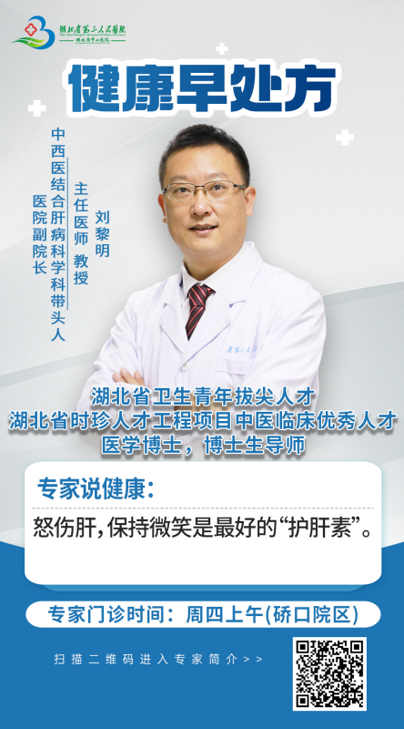 【健康早处方】刘黎明:怒伤肝,保持微笑是最好的“护肝素” 发布时间:2025-06-12 来源:宣传部 上一篇:【健康早处方】彭小祥:减盐、控盐,控制血压,远离卒中! 下一篇:【健康早处方】李俊:脸歪手垂话不清,立刻拨打120,时间就是脑细胞,耽误一秒都不行