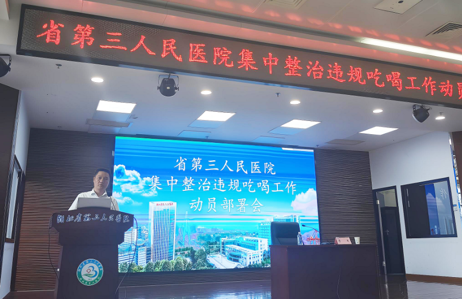 为深入学习贯彻习近平总书记关于作风建设的重要论述和指示批示精神,进一步巩固拓展落实中央八项规定精神成果,坚决刹住违规吃喝歪风,持续净化医院政治生态,6月13日,湖北省第三人民医院分别在硚口院区报告厅和阳逻院区7楼会议室召开中央八项规定精神学习教育专题辅导报告会暨集中整治违规吃喝工作动员部署会。
