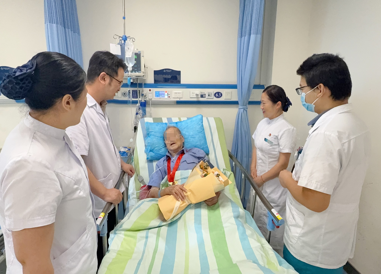 据悉,这位老党员入院时病情危急,消化道出血症状明显。经过消化内科医护团队的全力救治和精心照护,目前病情已趋于稳定。在党的生日这天,他选择佩戴这枚象征着至高荣誉的纪念章,表达自己对党的坚定信仰和深厚感情。