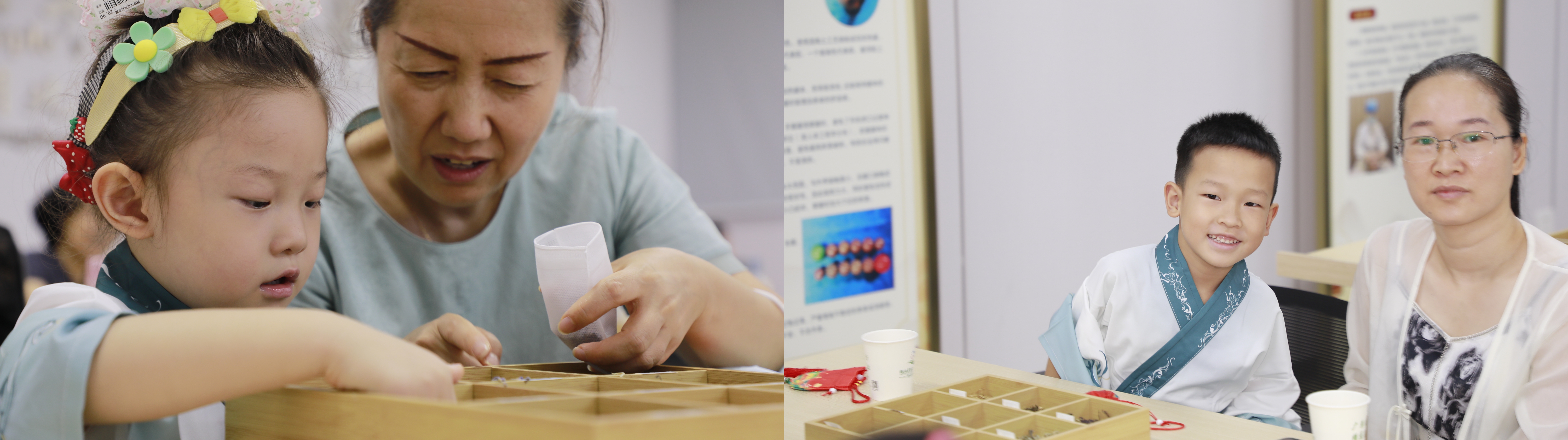 最激动人心的要数“驱蚊香囊DIY”。7岁的小睿睿把药包塞得鼓鼓囊囊,像捧着珍宝似的递给身边的妈妈:“妈妈,你戴上这个夏天就不怕蚊子啦!”其他小朋友也不甘示弱,纷纷举起制作成功的香囊,有的还把香囊别在汉服腰带上,房间里飘起阵阵药香。