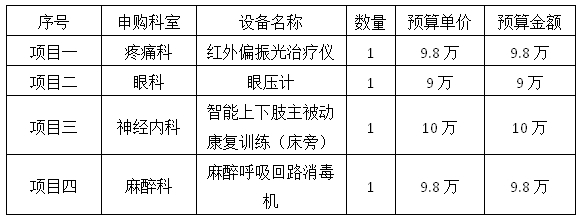 根据我院医疗设备采购、维保需求,拟采购以下医疗设备及维保项目,现将相关要求公布如下,欢迎有意向、符合条件的生产企业及供货商积极报名。
