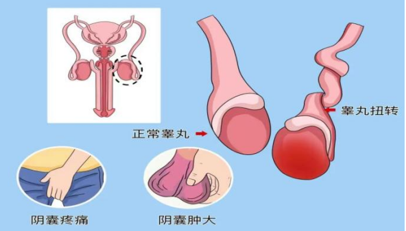 1、突发剧痛: 一侧阴囊突然出现剧烈疼痛,可能放射到下腹部、腹股沟,疼痛程度会逐渐加重。