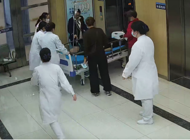 听到呼救声,慢病管理与康复中心(整合医学中心)护士段珂立即冲出病房,帮助将患者从电梯中抬出,其他正在科室忙碌的医护团队闻声而动,短短几秒内,迅速冲至电梯口。