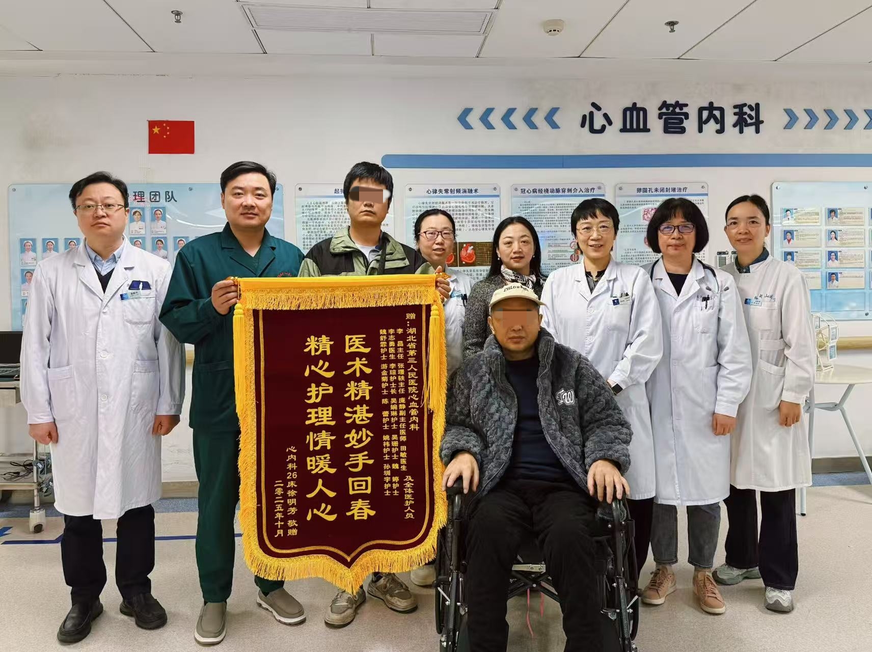 “是你们把我从鬼门关抢了回来!”10 月下旬的武汉秋意渐浓,可湖北省第三人民医院心血管重症监护室(CCU)的门口却暖意融融。患者徐大哥手捧两面鲜红的锦旗,眼眶通红,声音带着劫后余生的哽咽,将锦旗郑重交到医护人员手中。锦旗上绣的 “医术精湛妙手回春,精心护理情暖人心”,字字句句,都是他对这群 “救命恩人” 最真挚的感谢。